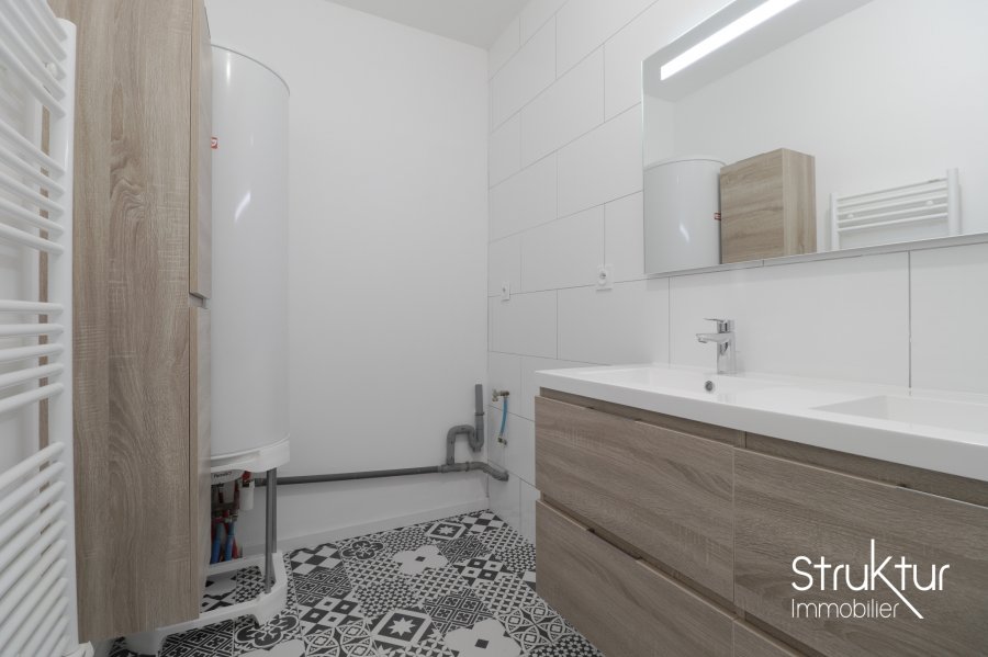 Il comprend un hall d'entrée avec placard aménagé, un lumineux espace de vie de 38 m2 avec cuisine équipée ouverte sur séjour, un dégagement dessert une salle de bains, un WC, un cellier, et 2 chambres avec dressings aménagés.