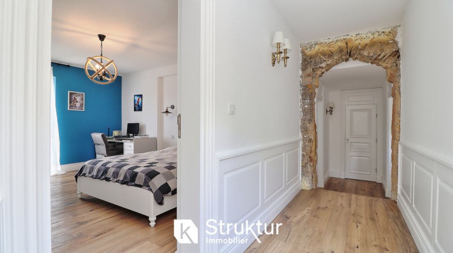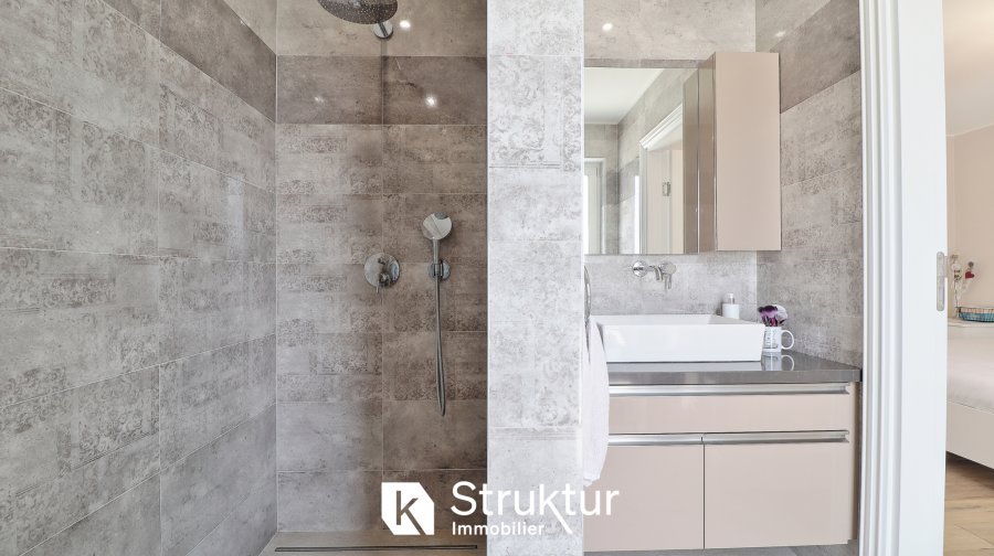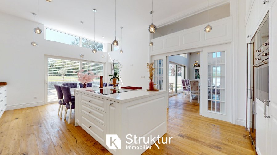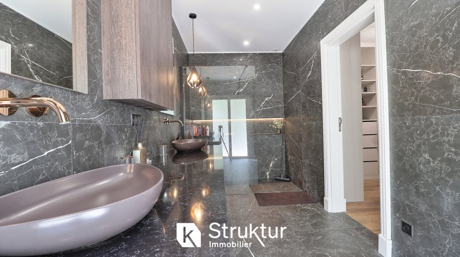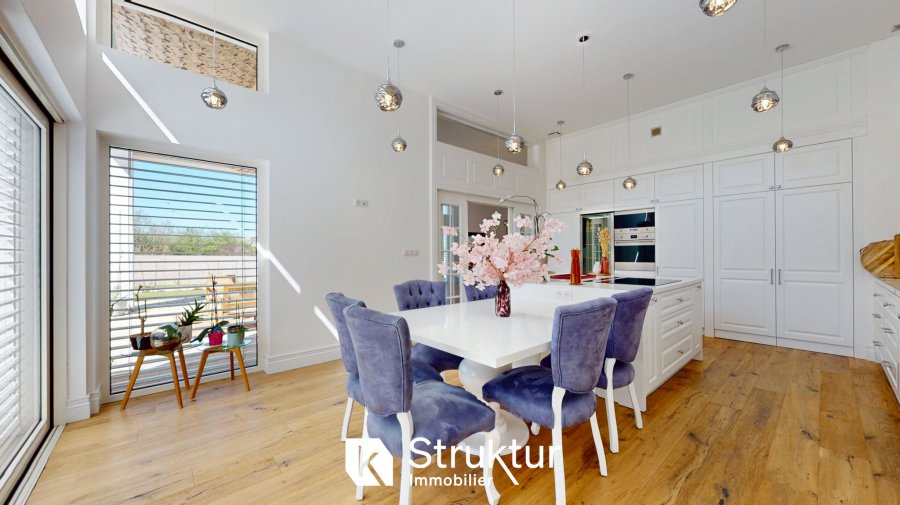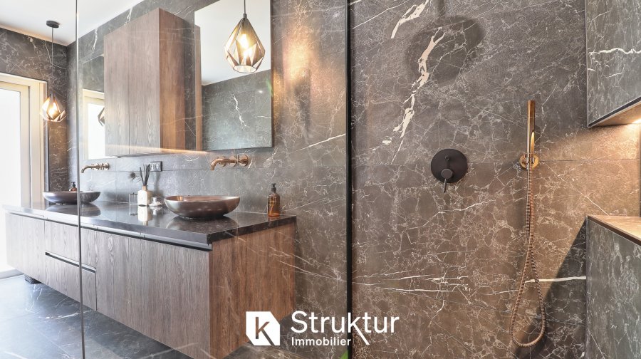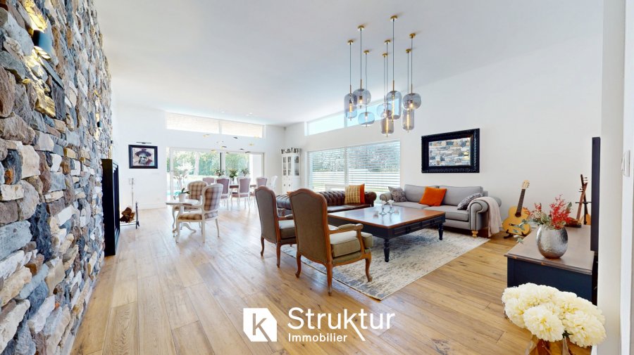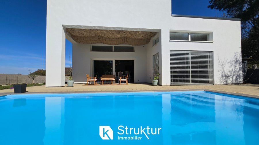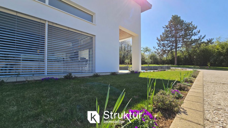 À cinq minutes de la frontière luxembourgeoise, dans un secteur résidentiel calme et bien desservi, cette villa de 290 m2 habitables prend place sur un terrain d'environ 21 ares. Construite en 2021, elle conjugue des volumes généreux, des matériaux soigneusement sélectionnés et une architecture tournée vers un extérieur sans vis-à-vis.