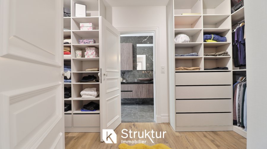 Nuit Le rez-de-chaussée regroupe une suite parentale avec dressing et salle d'eau double vasque, deux suites avec dressing et salle d'eau privative, ainsi qu'une salle d'eau supplémentaire. Une chambre indépendante, dotée d'une porte-fenêtre avec accès direct depuis l'extérieur, offre la possibilité d'y exercer une activité professionnelle -- libérale ou commerciale -- sans circulation dans la partie privative. À l'étage, une cinquième chambre spacieuse peut recevoir un usage bureau.